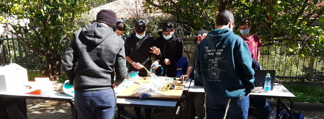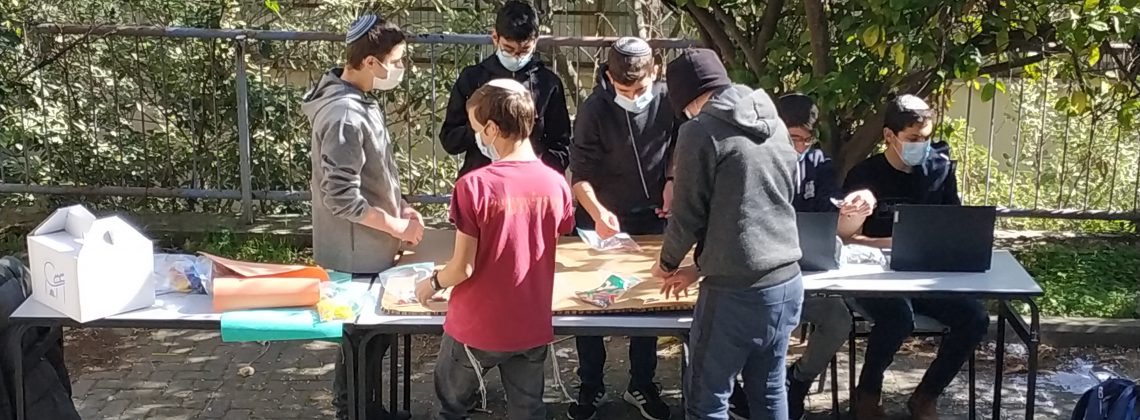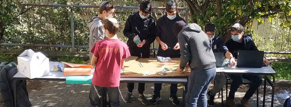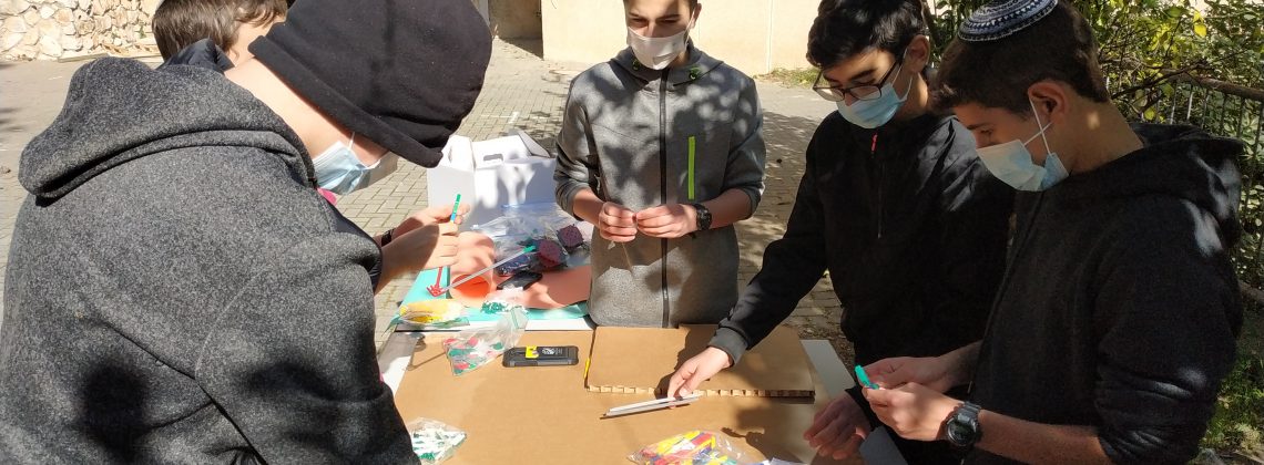 תלמידים נהנים מתכנון ובניה באויר הפתוח, תודות להנחיות הקורונה.